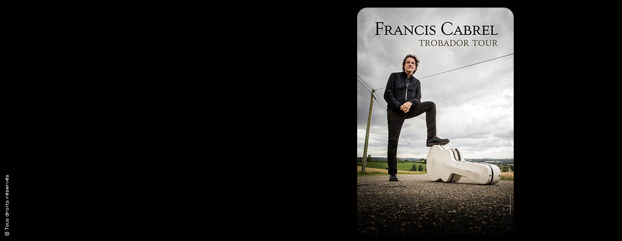 Petit fils d'émigré italien, Francis Cabrel compose dès son plus jeune âge des titres inspirés de grands artistes tels que Bob Dylan ou Neil Young. A l'adolescence, accompagné de son groupe de musiciens folk-rock, il enchaîne les représentations dans les bals populaires pour mieux se familiariser avec la scène. En 1974, armé de sa guitare, l'agenais participe à un concours de chansons françaises pour Sud Radio. Grâce à son titre «Petite Marie» aujourd'hui devenu culte, il se fait connaître du grand public et assure même les premières parties du chanteur Dave. Mais c'est en 1979, avec le tube «Je l'aime à mourir» issu de l'album «Les chemins de traverse», que Francis obtient une notoriété internationale. Avec plus de deux millions de 45 tours vendus, l'artiste discret est propulsé dans la lumière. «L'encre de tes yeux», «la Dame de Haute-Savoie», «Je t'aimais, je t'aime et je t'aimerai», «La corrida» ou «La cabane du pêcheur» autant de mélodies et de refrains qui font désormais partis du patrimoine musical français. D'albums en albums, Francis inspire, enchante, dénonce avec intelligence et bienveillance les injustices et s'impose naturellement comme un pilier de la variété française.