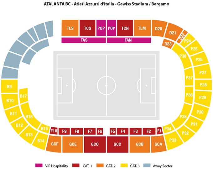 CATEGORIES : Catégorie 1 :Tribune Latérale Centrale - en rouge sur le plan Catégorie 2 :Tribune Latérale Standard - en orange sur le plan Catégorie 3 :Virage Standard - en jaune sur le plan